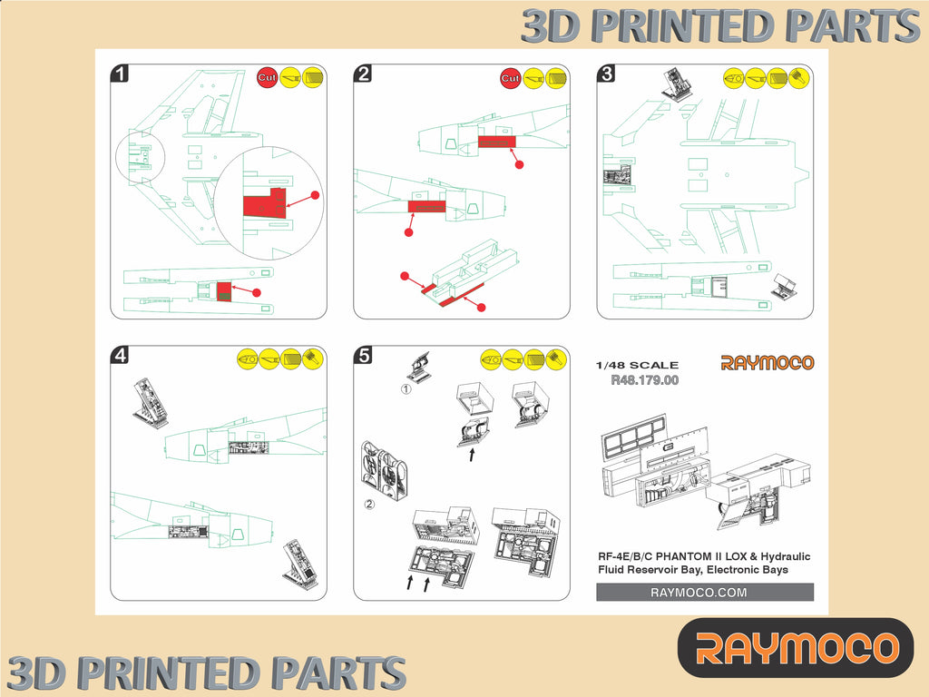R48.179.00 1/48 RF-4E/B/C Phantom II LOX & Hydraulic Fluid Reservoir Bay, Electronic Bays. Recommended Kit-Hasegawa
