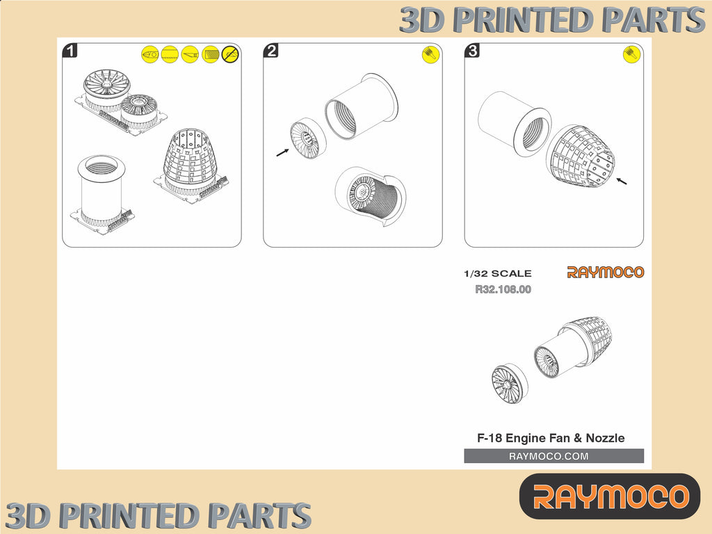 R32.109.00 1/32 Turbojet Engine F414-GE-400 & Engine Fan with Nozzle. For use with F/A-18E/F Super Hornet & EA-18G Growler. Recommended Kits - Trumpeter